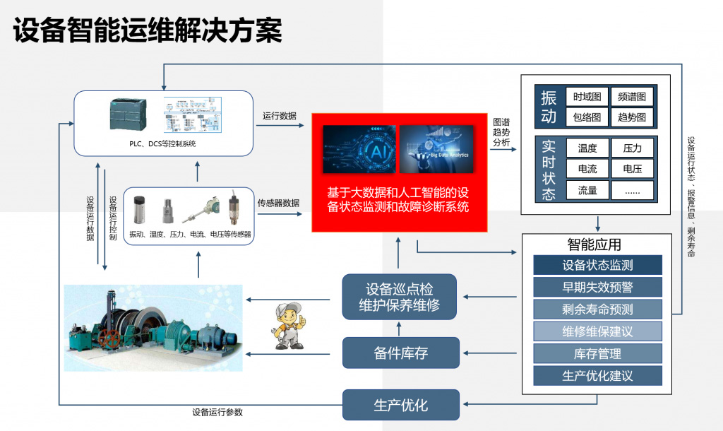 狀態(tài)監(jiān)測(cè) 系統(tǒng)系統(tǒng)采集設(shè)備控制器和傳感器的數(shù)據(jù),經(jīng)由先進(jìn)網(wǎng)絡(luò)技術(shù)將數(shù)據(jù)上傳到云端或者本地服務(wù)器,運(yùn)用大數(shù)據(jù)和人工智能算法對(duì)數(shù)據(jù)進(jìn)行處理和分析,